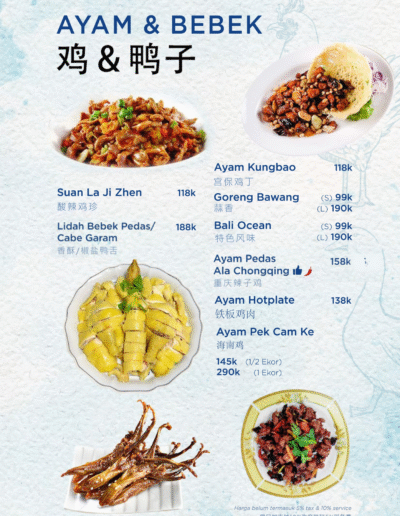 Tidak hanya live seafood dan chinese food. Bali Ocean Feast juga menyediakan berbagai menu BBQ (Shao Kao). Merupakan menu yang wajib dicoba, Uniknya terdapat pada bumbu special BOF yang tiada duanya.