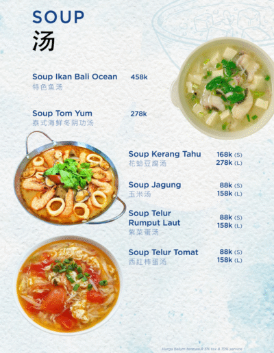 Nikmati berbagai pilihan hidangan laut segar dengan cita rasa autentik khas Bali Ocean Feast, yang dibuat dari bahan berkualitas terbaik untuk menghadirkan pengalaman kuliner laut yang tak terlupakan dan memanjakan selera Anda.